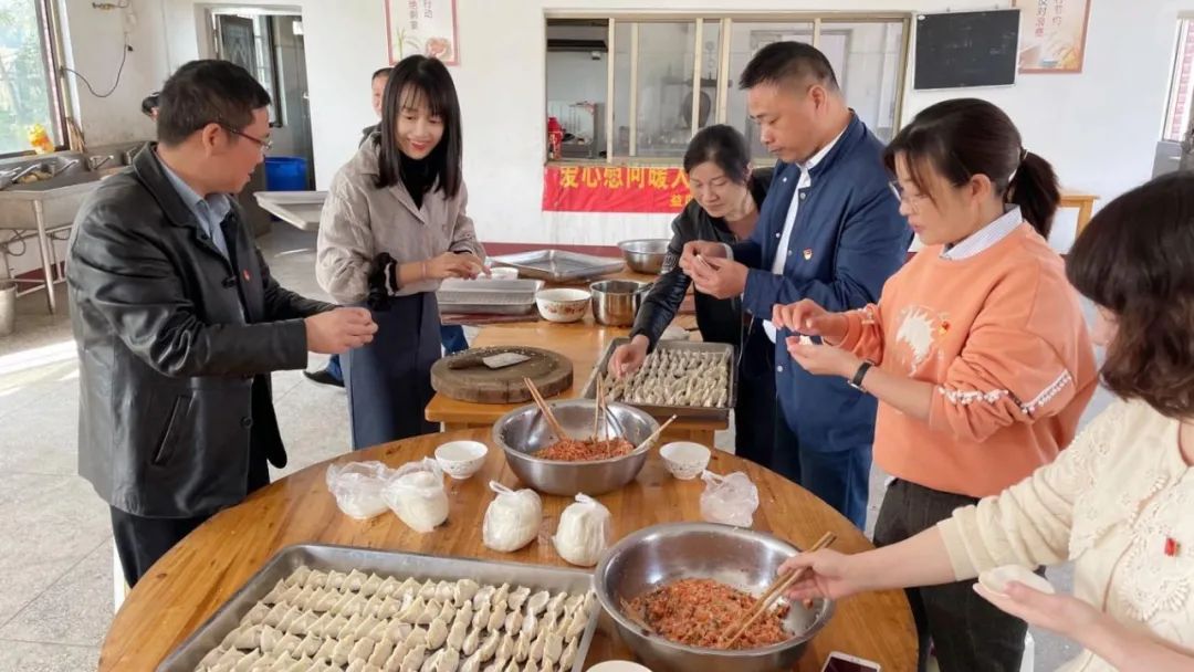 整個包餃子的過程歡聲笑語不斷,黨員同志們分工有序、配合默契,切菜、調(diào)餃子餡、包餃子一氣呵成,看到餐廳里熱鬧又歡樂的景象,敬老院的工作人員趕緊拿出相機記錄這溫馨的時刻。